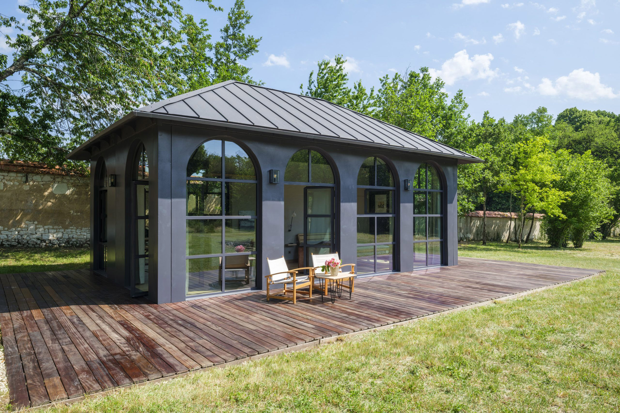 Les Fabriques de jardin existent en trois dimensions et sont principalement composées de verre et d’acier, aux couleurs de votre choix.
